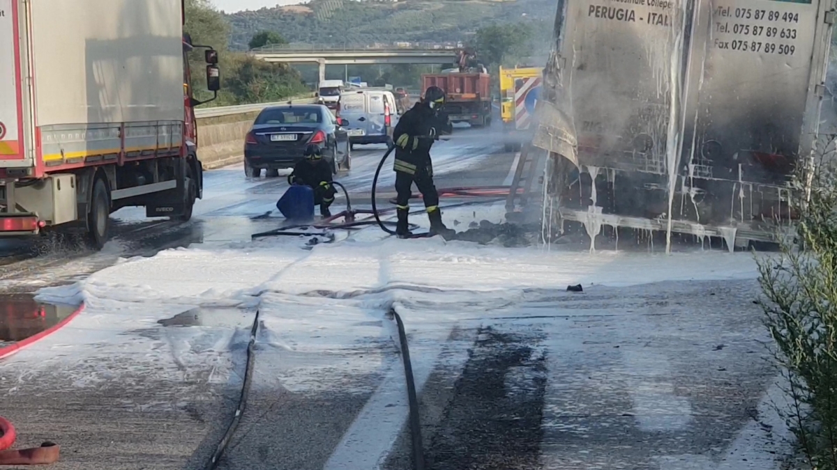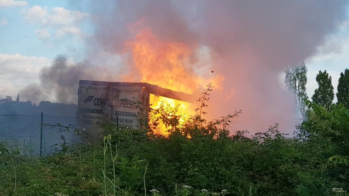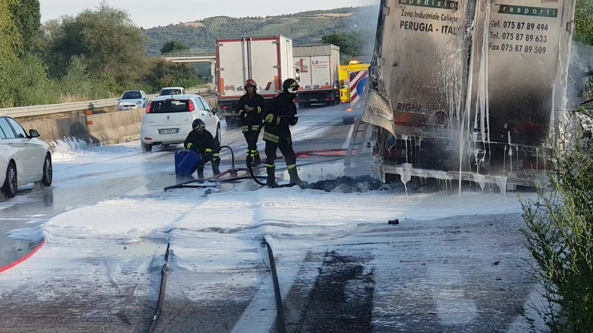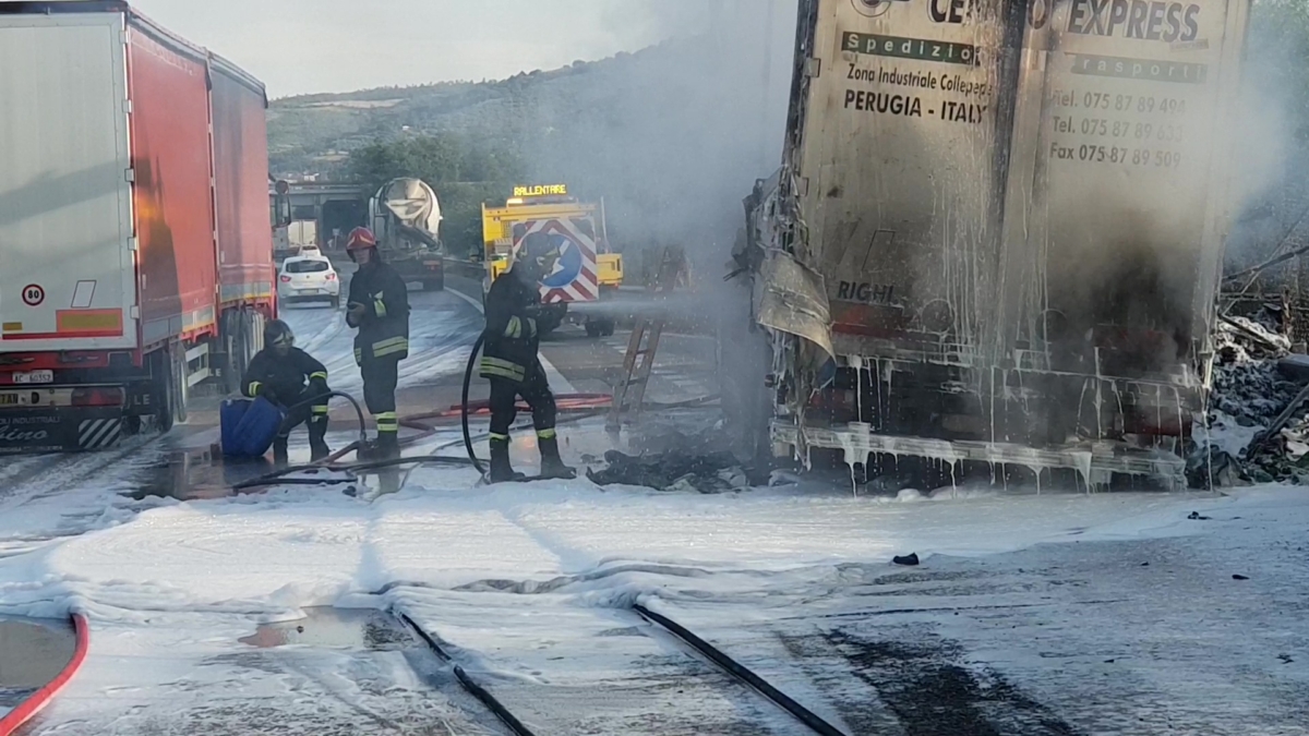 Immagini video dell’incendio del Tir sul Raccordo Perugia Bettolle [Foto video]