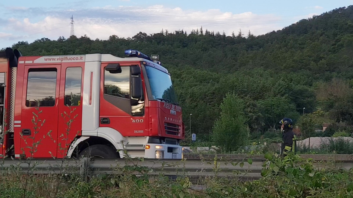 [quads id=1] Immagini video dell’incendio del Tir sul Raccordo Perugia Bettolle. Un autotreno si è incendiato lungo il raccordo autostradale Perugia Bettolle. Il mezzo trasportava materiali in plastica. E’ accaduto intorno alle ore 6,30 altezza svincolo Mantignana. Sul posto sono intervenuti i vigili del fuoco della centrale di Perugia Madonna Alta con 4 mezzi. La strada è rimasta chiusa fino alla completa estinzione delle fiamme. Le cause dell’incendio probabilmente sono da ricollegarsi al surriscaldamento dei freni. La strada è rimasta chiusa e per diverse ore si è viaggiato su una sola corsia.