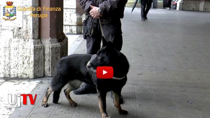 Le immagini in presa diretta del cane antidroga Olinda, della Guardia di Finanza, in azione a Perugia