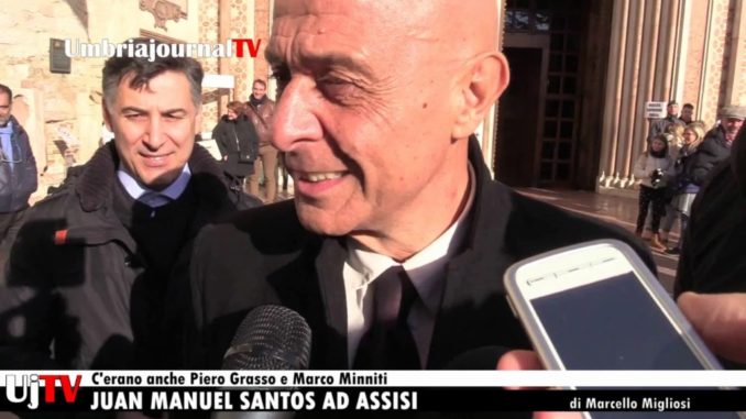 Consegnata, ad Assisi, la lampada della pace al presidente della Colombia, Manuel Santos